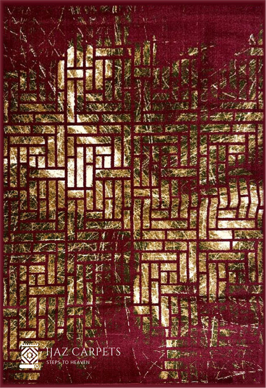 Abstract Box Pattern Rug | Size: 6.6ft width x 9.6ft length (200cm x 290cm) | Article #M710RED-3