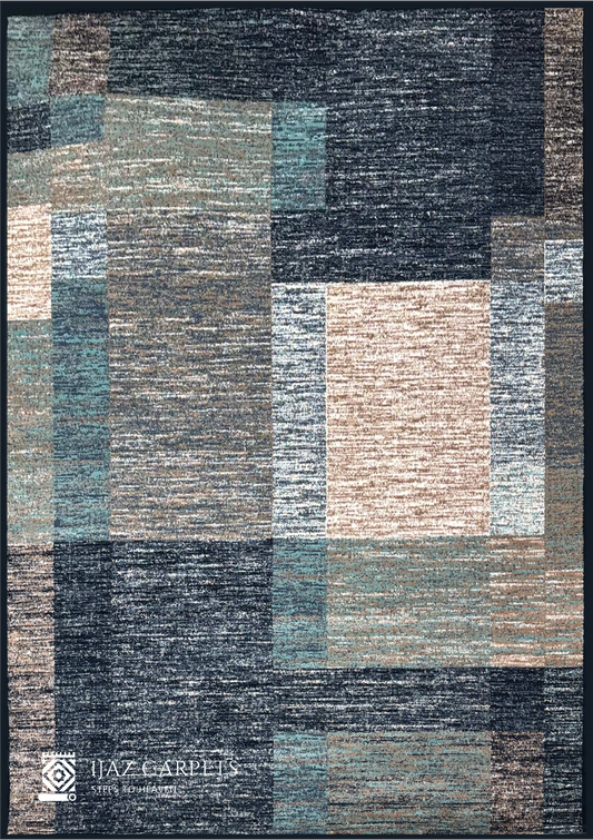 Abstract Box Pattern Rug | Size: 5ft width x 7.5ft length (150cm x 225cm) | Article #M58BLU-8